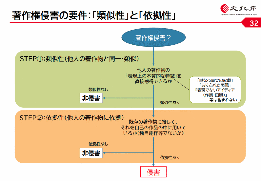 - 依拠性: 既存の著作物からインスピレーションを得ているか